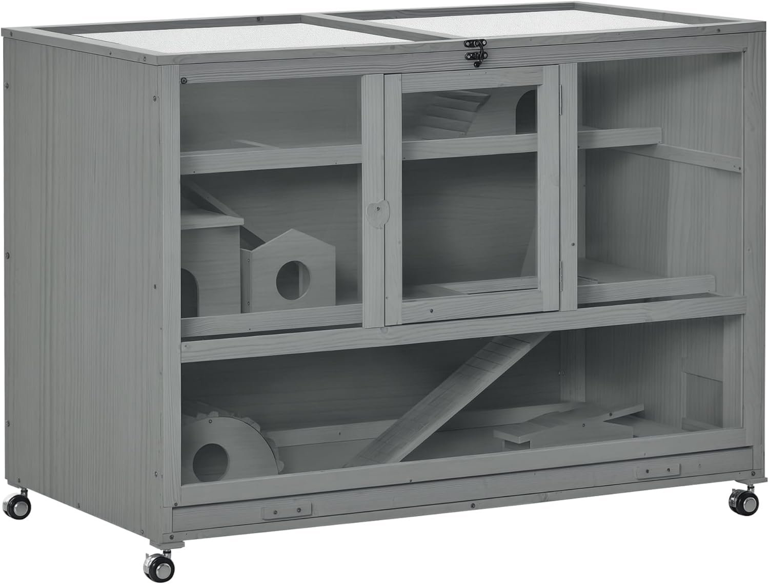 PawHut Two-Story Small Animal Cage Removable from Stand, Gui...